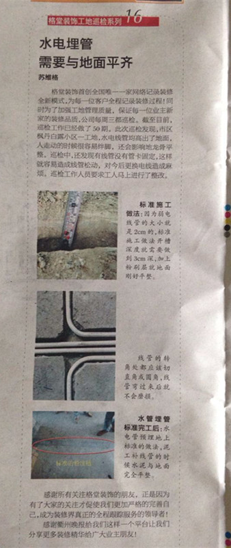 格堂作为衢州家装行业的领头羊,一直引领着衢州家装行业朝着良性发展,如工地巡检就是为了保证业主的工地质量。此次巡检有枫丹白露、