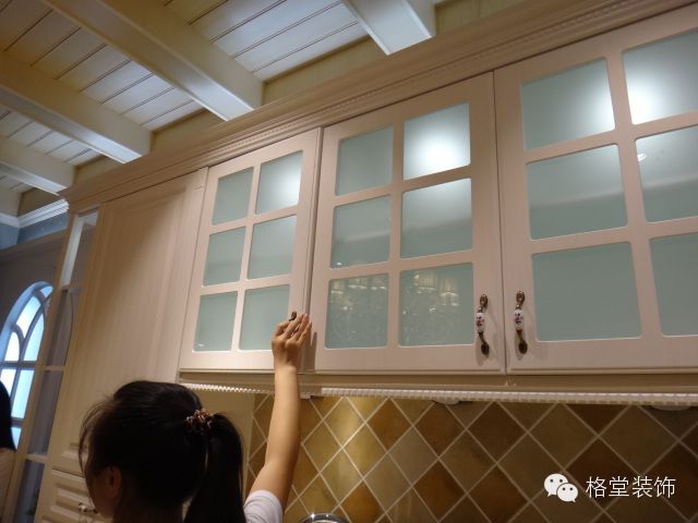 小玲忍不住摸了一把吊高的白色橱柜,看上去很喜欢这款。其实小编很想问问,手感怎么样。