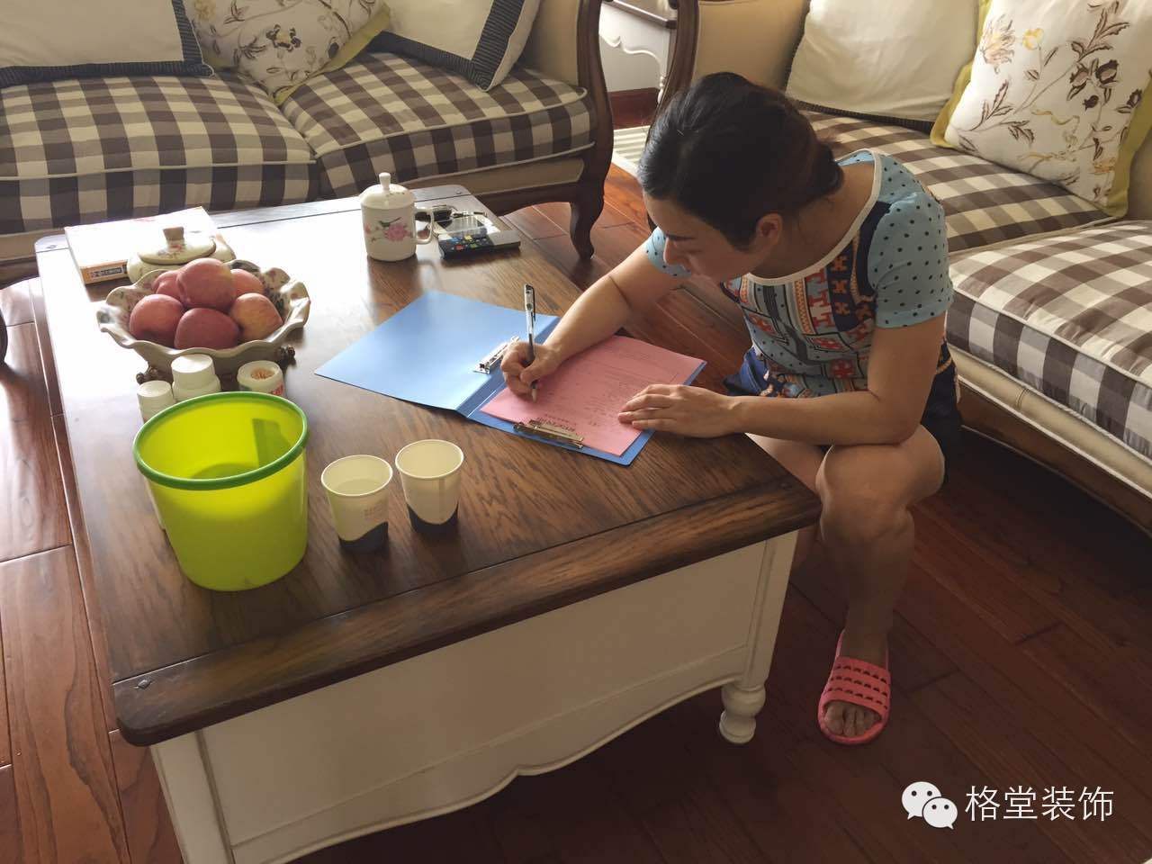 小伙伴们来到新湖望江美寓的业主家里,和业主交流装修上的意见,如果发现存在的一些小问题,现场进行处理。