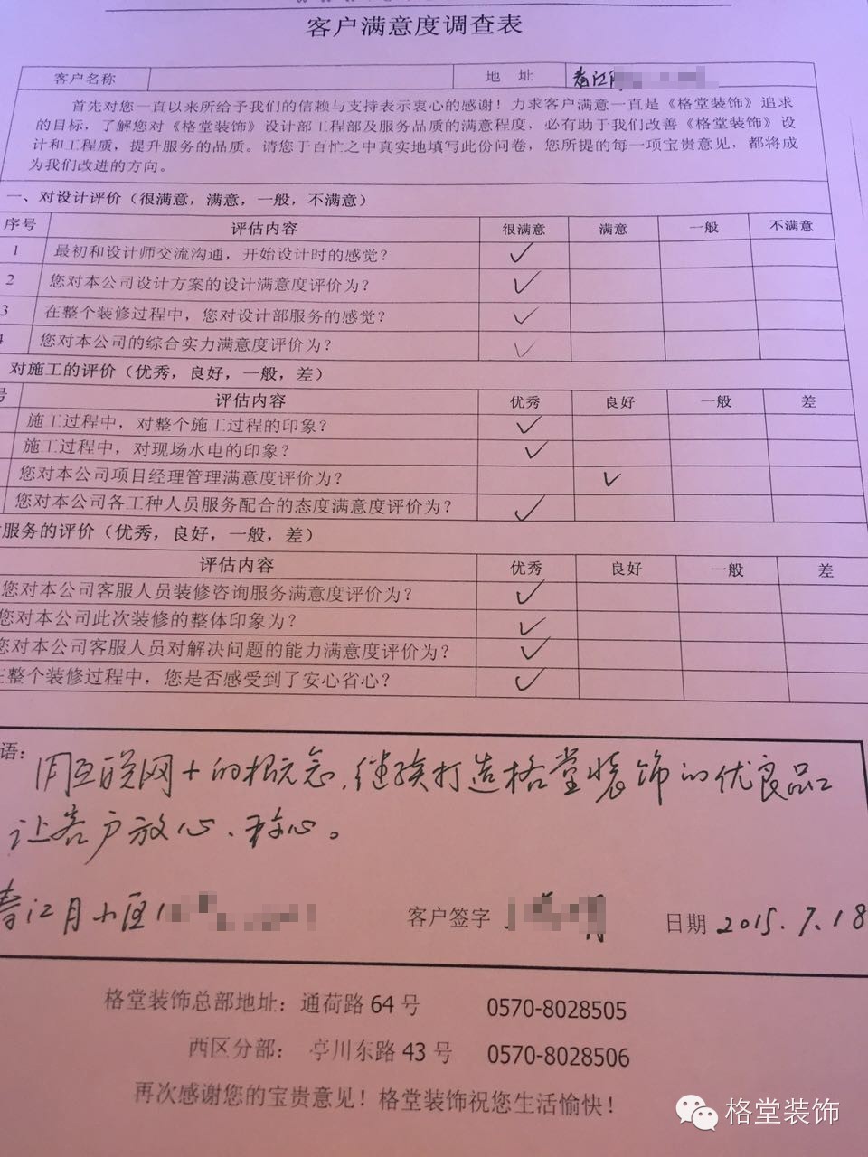 业主给我们打分啦!