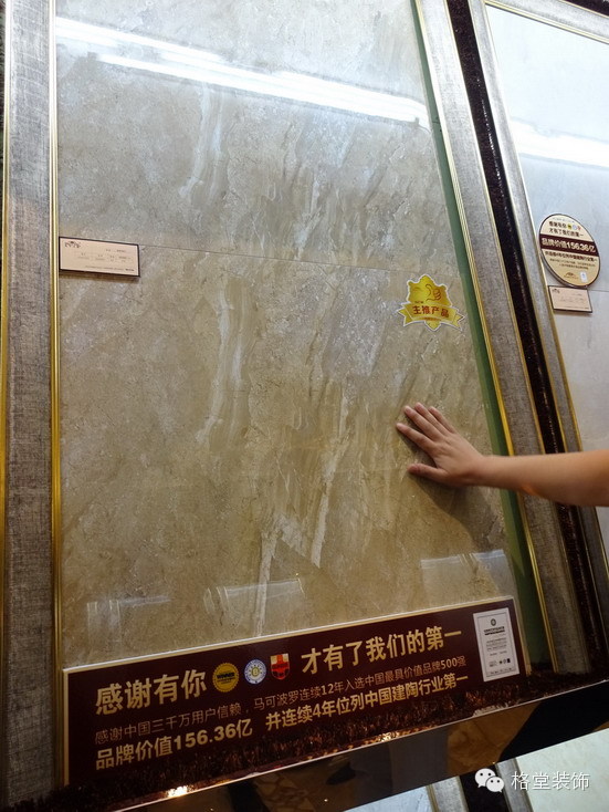 再来了解下全抛釉的瓷砖:丰富的釉面,平速度好,胚体质量好,产品多,而且划伤表面也不明显,价格也实惠,一般200元左右/片。 这款是不是很漂亮呢 马可波罗最早是仿古砖,优势一直在保持:品牌度高、生产链非常发达,独立研发和生产。 瓷砖按照功能分为:地砖、墙砖及腰线砖等。 该认真的时候就要认真的听讲解哦!不过也不用这么严肃吧!哈哈!