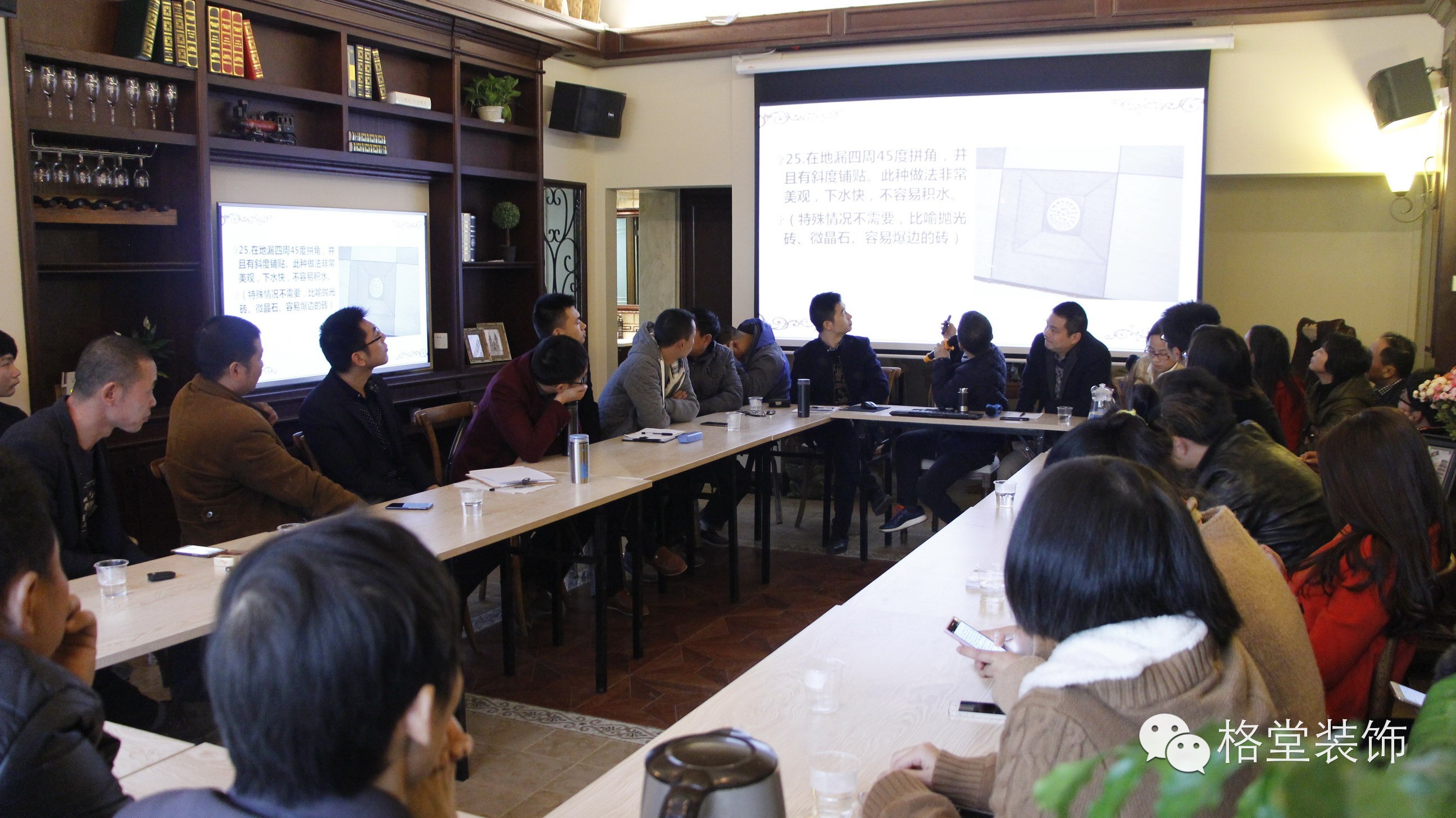 公司内部会议结束后,格堂所有员工及泥工师傅共同参加了此次泥工标准学习培训会,以提高格堂泥工的工艺和施工标准化的实施。