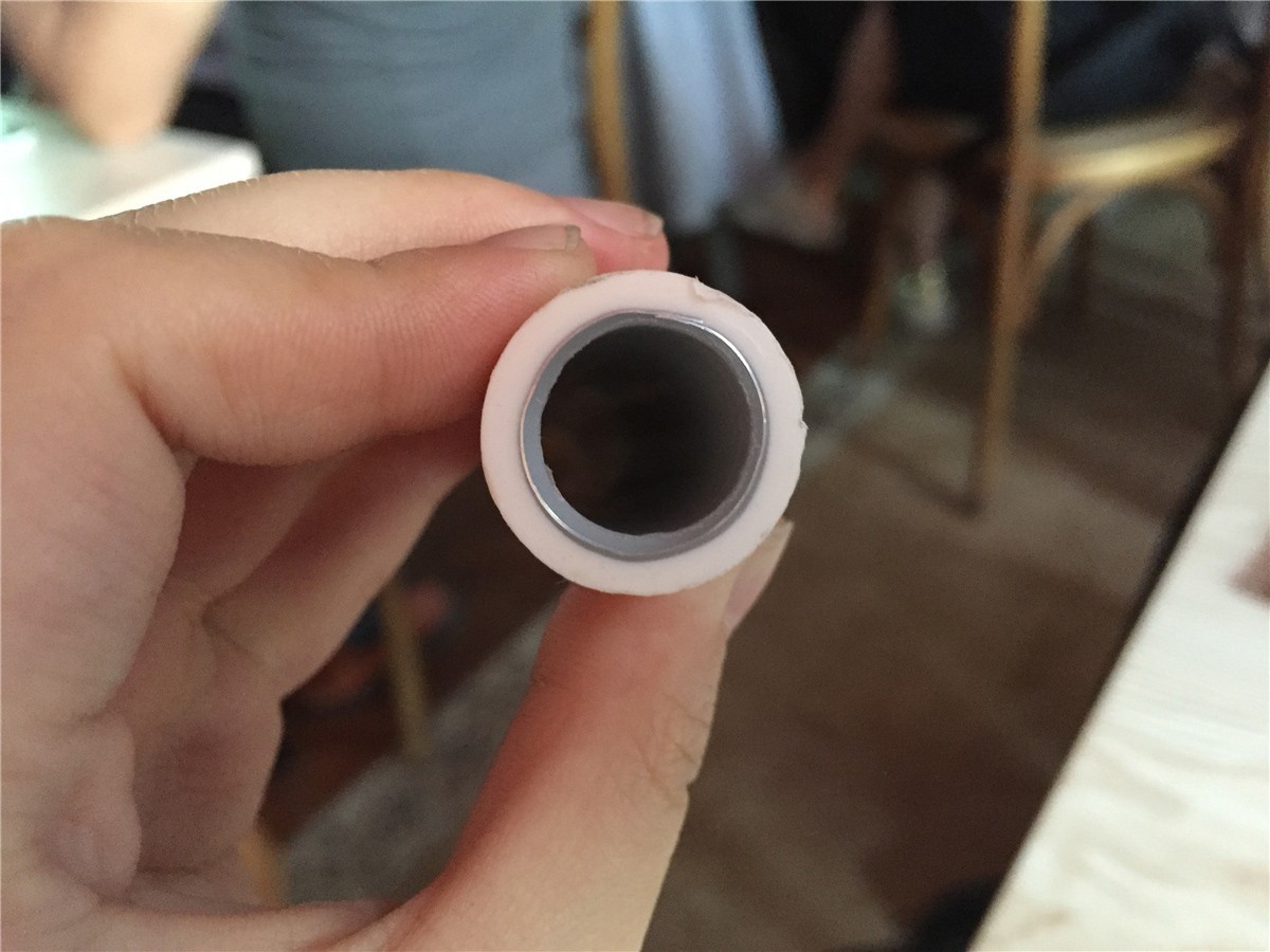 ▲对比其他品牌管道差异一目了然 专利研发 ↓ 铝层、塑料层100%粘合,不留缝隙,剥离强度更高,从根本上杜绝了塑铝结合处脱开的情况发生!