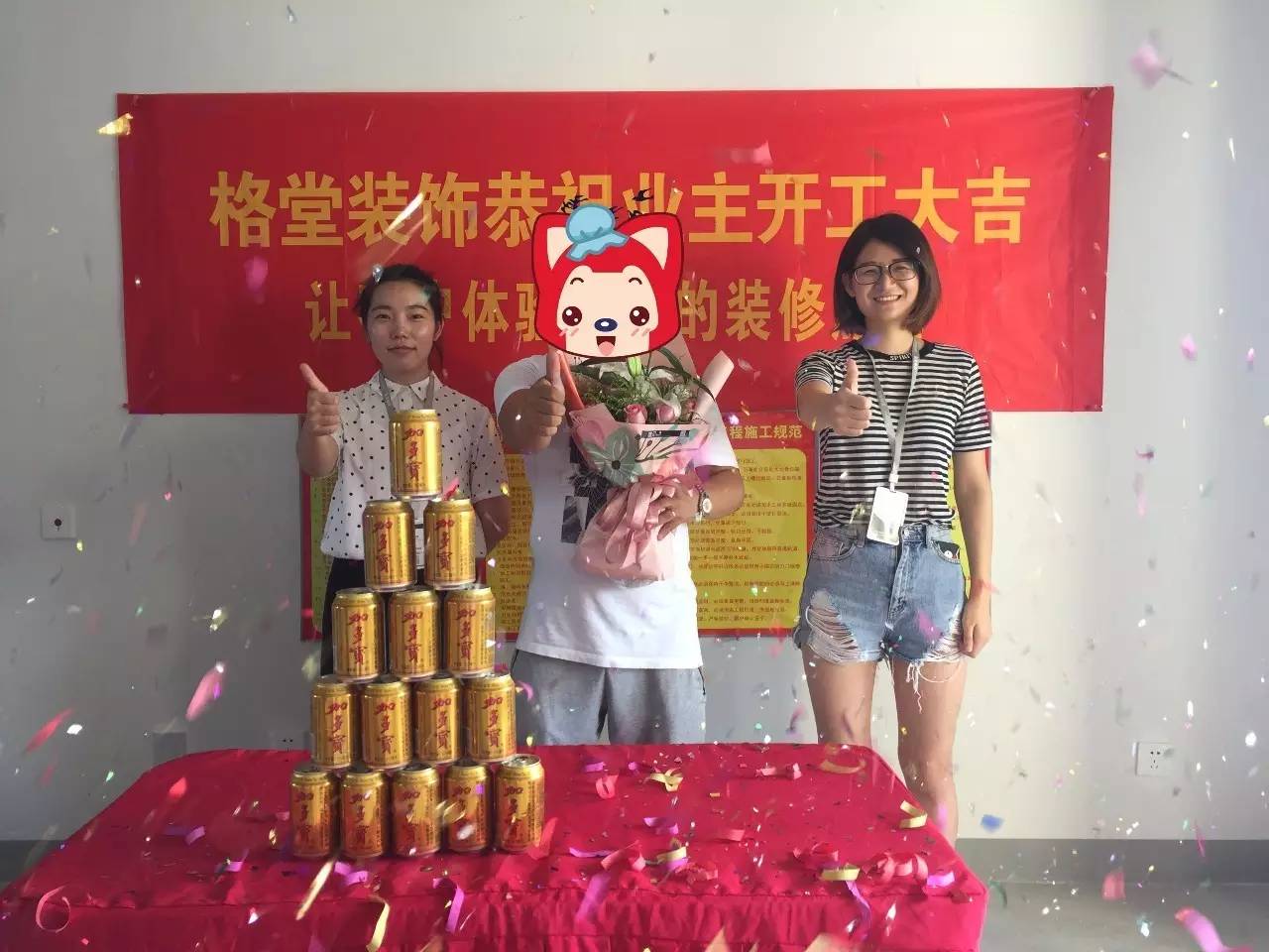 ▲因为业主的日子选好了,我们提前做开工仪式! 装修正式动工要在吾悦全部交付以后,办好装修手续,得到物业的审批许可才可以开始。 小编透露一下,我们公司还有2套样板房马上装修,可以提供真实的样板房给业主们参观。两套样板房都体现了我们格堂1680元/平方,1980元/平方套餐的特点。我们的样板房与开发商的高档样板房可以相媲美,欢迎来参观体验。