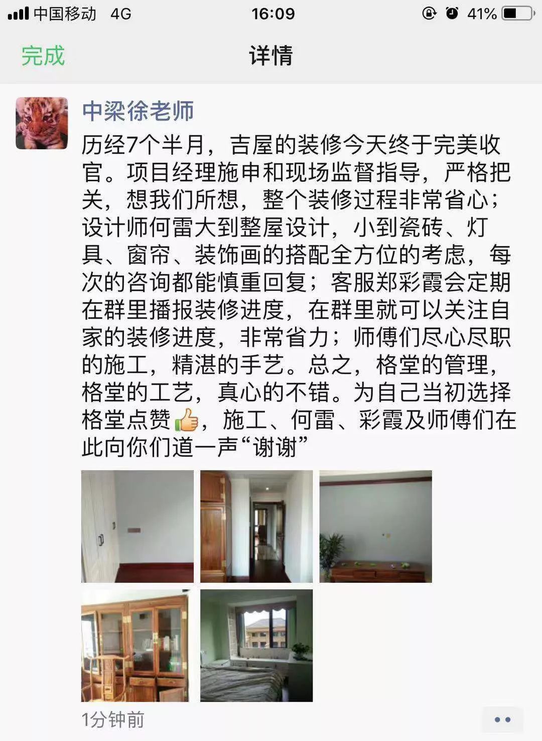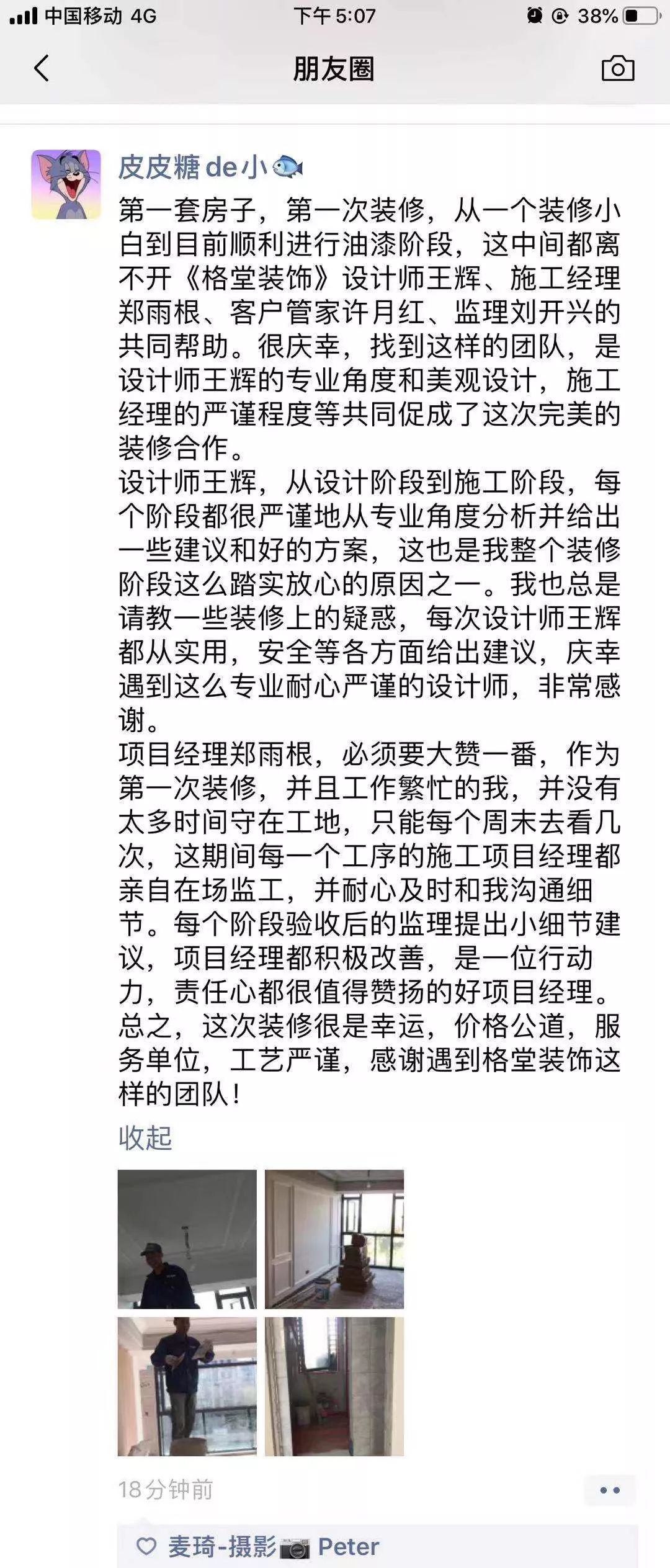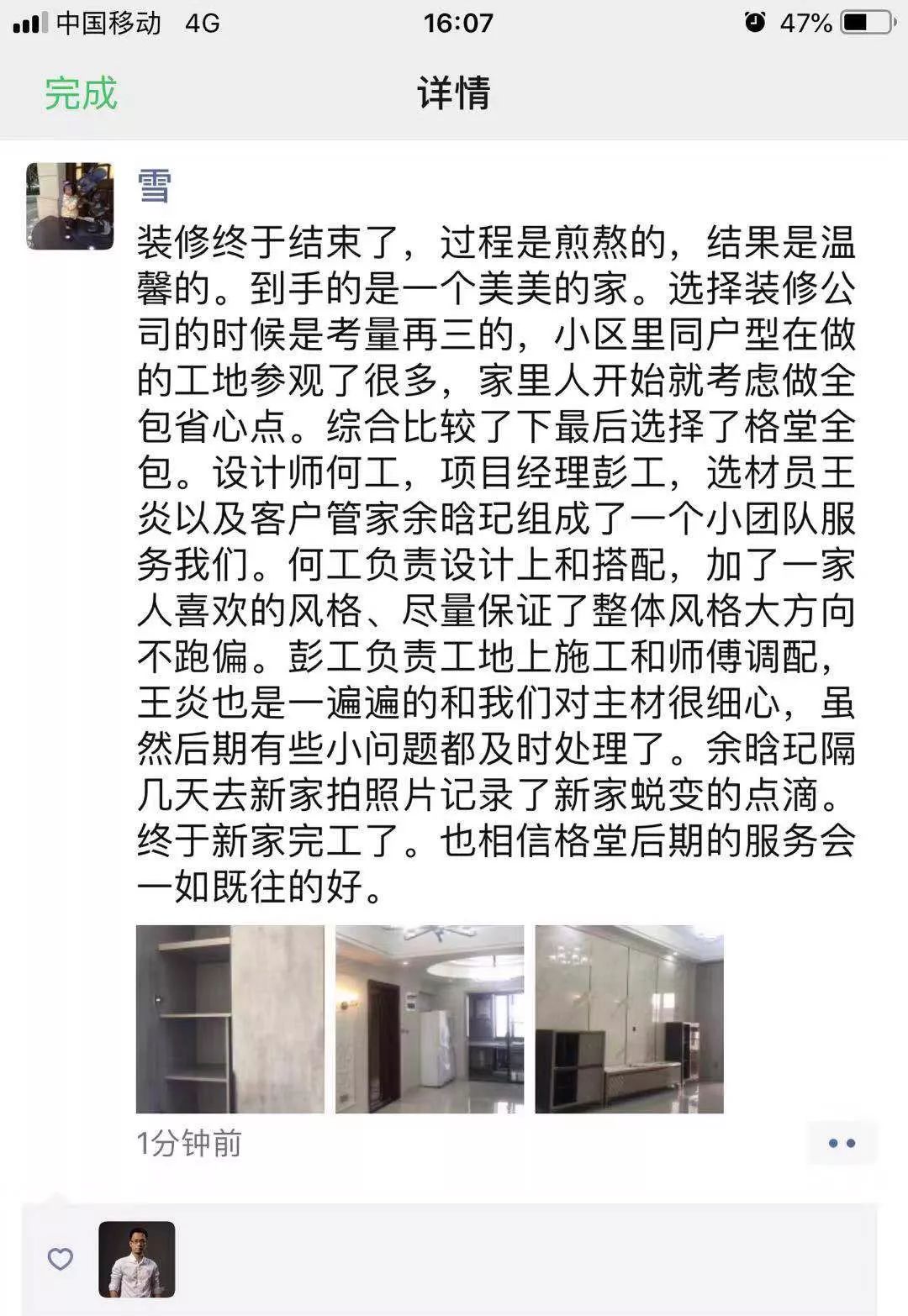 金杯,银杯,不如业主的好口碑!选择装修公司的标准:看一个装修公司有多少个好评!一个装修公司有多少个完工照!其它一切都是空谈...... 经过十几年的发展,装修行业从低门槛的阶段发展到标准化进步。市场的事实证明,传统的电话营销非常扰民,疲劳的电话轰炸只会引起客户的反感。还有些公司喊口号型,对外宣称自己是最好的什么,最牛的什么,没有实际的数据体现真正的实力,最后的结果差强人意。 格堂装饰一直有前瞻性和大局观,很早就顺应装修行业市场变化。我们抛弃传统营销驱动型,一直坚守价值创造型的方向发展,坚守 “客户口碑” 的核心发展战略。  客户口碑在家装行业一直具有举足轻重的地位,甚至比花钱打广告的传播效果更好,更深入人心。 13 年来,数千名业主共同选择了格堂装饰,一同见证了我们的发展与成长。因为产品和服务的体验感好,老客户也非常愿意分享给周边的朋友,这就是格堂的客户口碑。 我们目前的客源里,80% 左右都是来自老客户的介绍。客户是我们最好的广告,做一套漂亮工地,并拍好完工照,是我们格堂的骄傲。得到客户的好评,是我们格堂人的能量源泉。有好的口碑才会有好的影响力。目前,客户满意度已经列为格堂装饰的硬性考核指标,必须要有 100% 的客户好评!