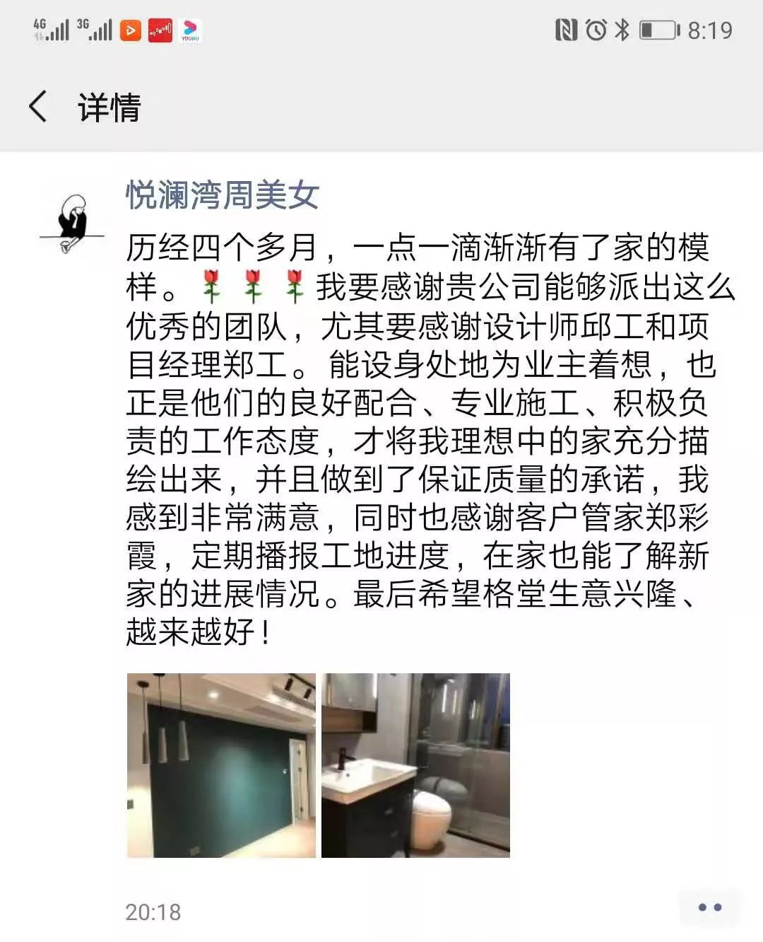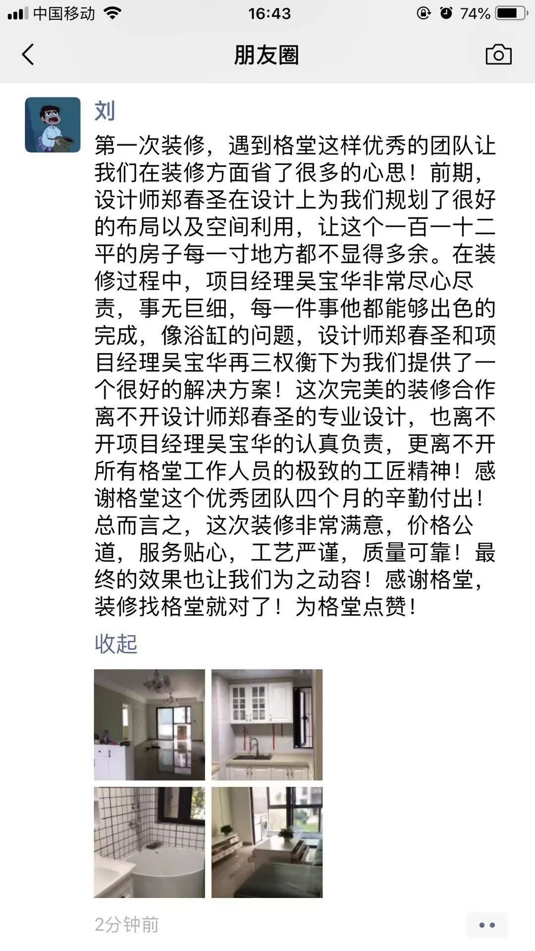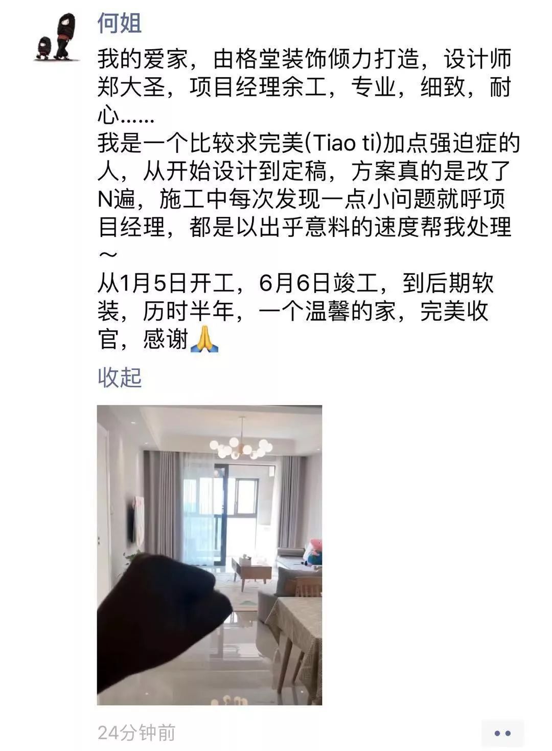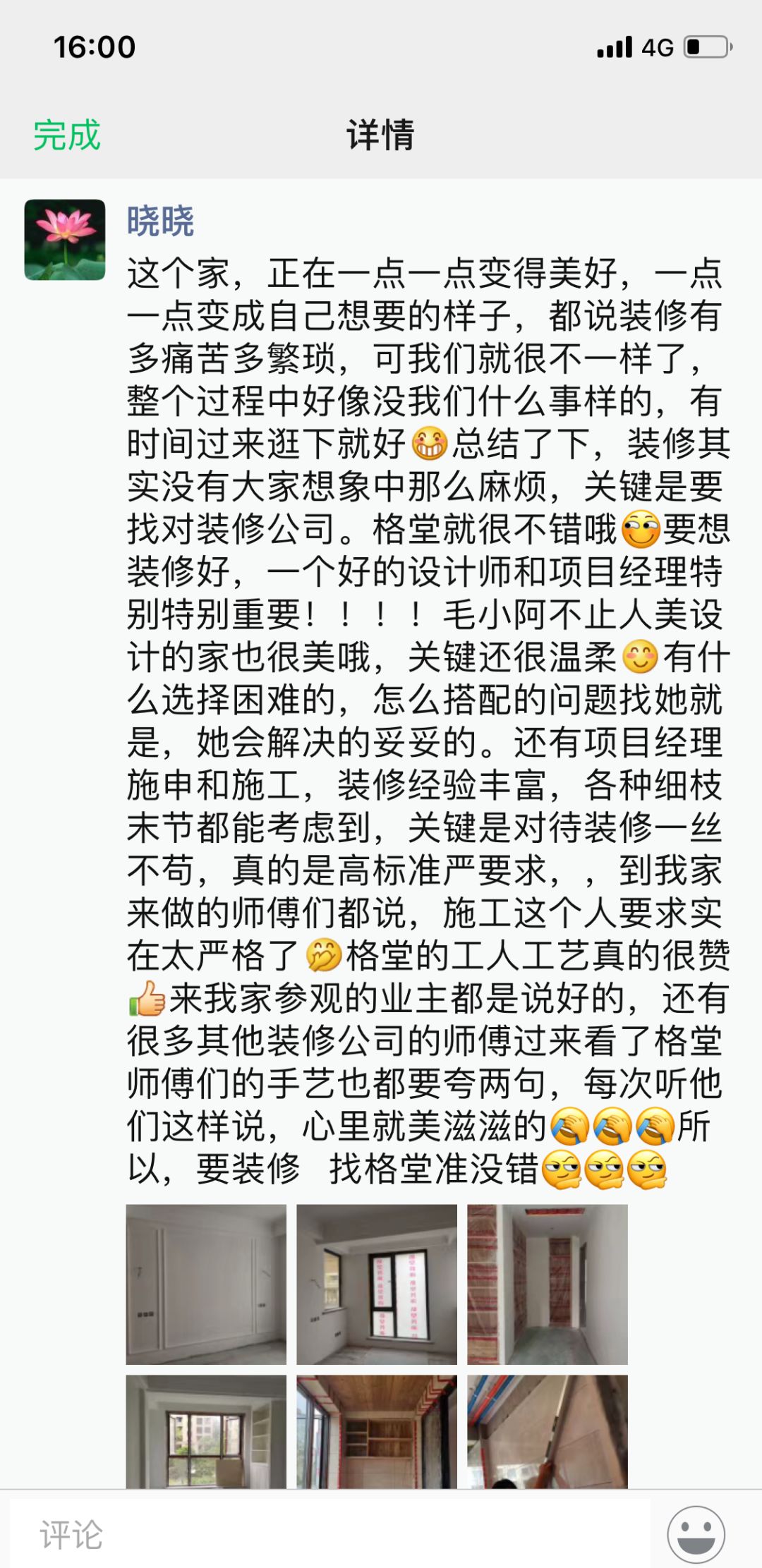 金杯,银杯,不如业主的好口碑!选择装修公司的标准:看一个装修公司有多少个好评!一个装修公司有多少个完工照!其它一切都是空谈...... 经过十几年的发展,装修行业从低门槛的阶段发展到标准化进步。市场的事实证明,传统的电话营销非常扰民,疲劳的电话轰炸只会引起客户的反感。还有些公司喊口号型,对外宣称自己是最好的什么,最牛的什么,没有实际的数据体现真正的实力,最后的结果差强人意。 格堂装饰一直有前瞻性和大局观,很早就顺应装修行业市场变化。我们抛弃传统营销驱动型,一直坚守价值创造型的方向发展,坚守 “客户口碑” 的核心发展战略。  客户口碑在家装行业一直具有举足轻重的地位,甚至比花钱打广告的传播效果更好,更深入人心。 13 年来,数千名业主共同选择了格堂装饰,一同见证了我们的发展与成长。因为产品和服务的体验感好,老客户也非常愿意分享给周边的朋友,这就是格堂的客户口碑。 我们目前的客源里,80% 左右都是来自老客户的介绍。客户是我们最好的广告,做一套漂亮工地,并拍好完工照,是我们格堂的骄傲。得到客户的好评,是我们格堂人的能量源泉。有好的口碑才会有好的影响力。目前,客户满意度已经列为格堂装饰的硬性考核指标,必须要有 100% 的客户好评!