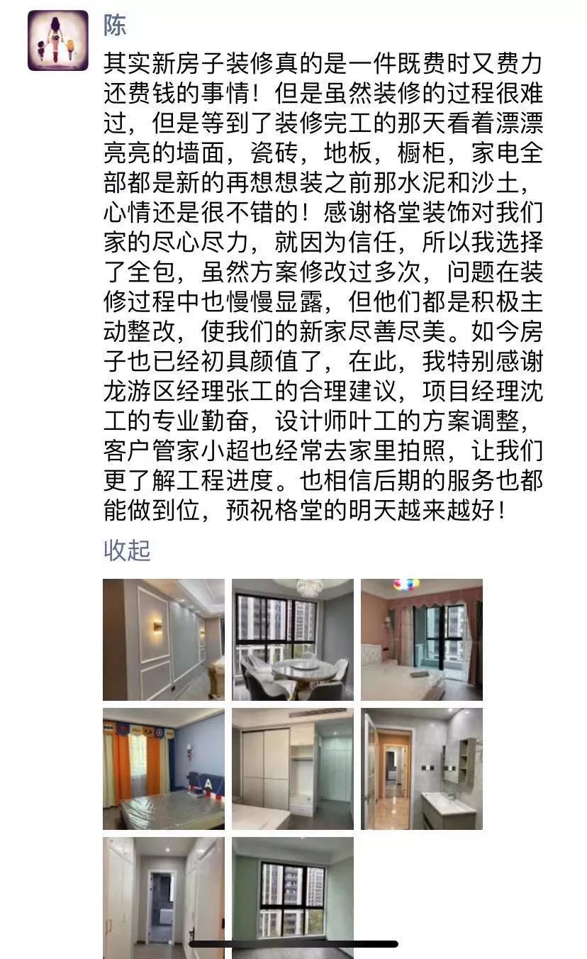 由于年底物价上涨,辅材主材和人工价格明年必然上涨。格堂装饰特举办年底价格保卫战活动,衢州,龙游,常山,江山,开化,遂昌,6城联动!如果您是明年收房或者想要明年装修,凡是在活动12月29日前与公司签定合同的客户均可享受一年内装修价格不上涨的保障,格堂装饰为您保“价”护航!  在装修界有一种口碑的力量叫 “业主代言”格堂装饰好评如潮 实力不是自己吹的 格堂目前收获了 数千位 装修业主的点滴心语 每次收获一个好评能量就增加一倍! 感谢选择格堂的业主们 好评实在太多 为了不辛苦翻页,小编全整一起了