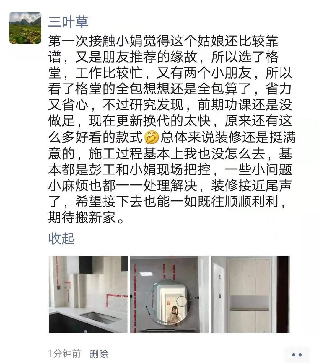 先进服务奖![]() 为了贯彻 “让客户体验高品质的装修服务” 的公司使命,体现格堂装饰的 大匠精神,鼓励和表彰积极做好为客户服务工作的员工,公司新设立“先进服务奖”。 “先进服务奖” 的先进事迹将 记入格堂史册 并放在 文化墙、官网、微信群 上播报。公司所有员工都需要转发获奖事迹。 ![]() 感人故事 ![]() 一个周二的晚上,衢州公馆的女业主媚儿姐遭遇了一件特别愁人的事情。自己放在洗手盆边的钻石吊坠,一不留神滑进了下水道,自己也只能眼睁睁的看着,全无解决办法。媚儿姐心爱的吊坠沉寂在下水道整整一晚,第二天醒来依旧满脑子放不下,立刻联系了周工前来援助。上午人还在外地的周工,下午一得空就上门解决难题了。 ![]() 凭借多年的施工管理经验,周工即刻判断最佳的解决办法是从楼下邻居的管道里取出来。热心的邻居也很乐意帮忙,最后成功解救了被困数个小时的钻石吊坠。失而复得的喜悦瞬时涌上了媚儿姐的心头,满心的感激化为一个大大的红包嘉奖,周工礼貌的拒收回绝,只是举手之劳,有帮上忙就好。 ![]() 一年前温馨的开工合影 一年后热心的火速救急 无论是装修期间还是装修结束 媚儿姐对周工的服务始终赞不绝口 ![]() ![]() ![]() 颁奖典礼 ![]() 这次荣获“先进服务奖”的是工程部项目经理周洪标。周工为人低调内敛,务实沉稳,十年如一日奔忙在施工一线,匠心打造精品,暖心的服务更是润物细无声,尽显责任与担当。 项目经理 - 周洪标 2020年11月先进服务奖获奖者 ![]() ![]() ![]() ![]() 感人故事 ![]() 周四深夜,杨工忙完恒诚莱茵河畔工地的事情,又匆匆赶往印江南张女士家帮忙,赶到现场已经是晚上9点钟了。事情源于张女士买了个垃圾处理器,这个物件并不像换灯泡这么简单,自己到手了更不懂安装,如果强行尝试害怕影响到后期正常使用,思前想后,求助了格外靠谱的杨工来帮忙。 ![]() ![]() 安装垃圾处理器真的是个技术活,信任的杨工不负所望,安装配件仔细确认,专业严谨的一步步将垃圾处理器安装衔接到位,同时进行下水测试,管道密封到位,并没有渗水。张女士连着3个表情赞叹666,杨工,优秀的项目经理! ![]() ![]() 颁奖典礼 ![]() 这次荣获“先进服务奖”的是工程部项目经理杨少君。杨少君家住衢州沈家,身为龙游市场开拓先锋,义无反顾常驻龙游,尽心尽力为业主服务,加班加点都是生活常态,龙游分公司就是他第二个家。 项目经理 - 杨少君 2020年11月先进服务奖获奖者 ![]() ![]() ![]() ![]() 感人故事 ![]() 中梁国宾府的朱先生是高颖一直用心服务着的客户,工地后期的安装阶段,家里的卫生状况令朱先生不甚满意,这瞬时间的感受,引起了高颖本人的高度重视。 ![]() 高颖是一个做事很有魄力的人,风风火火,说干就干。隔天上午扫荡了公司里的所有卫生工具,一个人扛起厚重的保护膜,急急赶往朱先生家里,细致认真的打扫干净每一个角落。 卫生清扫干净以后,开化公司的负责人贾总闻讯前来协助,两个人一起动手贴保护膜,干的热火朝天。但凡碰到够不着的地方,两个人分工明确,贾总专心扶椅子,高颖则站在椅子上,细致贴起卫生间墙上的保护膜,一个剪,一个贴,配合亲密无间。第一时间站出来解决卫生问题,直做到朱先生满意为止。 高颖认真负责的工作态度深深感染了大家,懂得站在对方的角度思考问题,从不逃避问题,第一时间为业主排忧解难,服务就像及时雨,点点滴滴滋润心田,充满了贴心的关怀与温度。 ![]() ![]() ![]() ![]() 颁奖典礼 ![]() 这次荣获“先进服务奖”的是开化市场部的高颖。高颖是桂林姑娘,背井离乡只身来到开化打拼,在格堂半年多的成长时间里,身上洋溢着满满的活力与冲劲,工作认真热情,服务温暖人心。 市场部 - 高颖 2020年11月先进服务奖获奖者 ![]() ![]() ![]() ![]() 一个个感人肺腑的故事,一段段动人心弦的真情。每一个人,都可以书写格堂的感人故事,捧出有品质有温度的优秀人物事迹。格堂人的精神就是一本写不完的书...... ![]() ![]() ![]() ![]() ![]() ![]() |