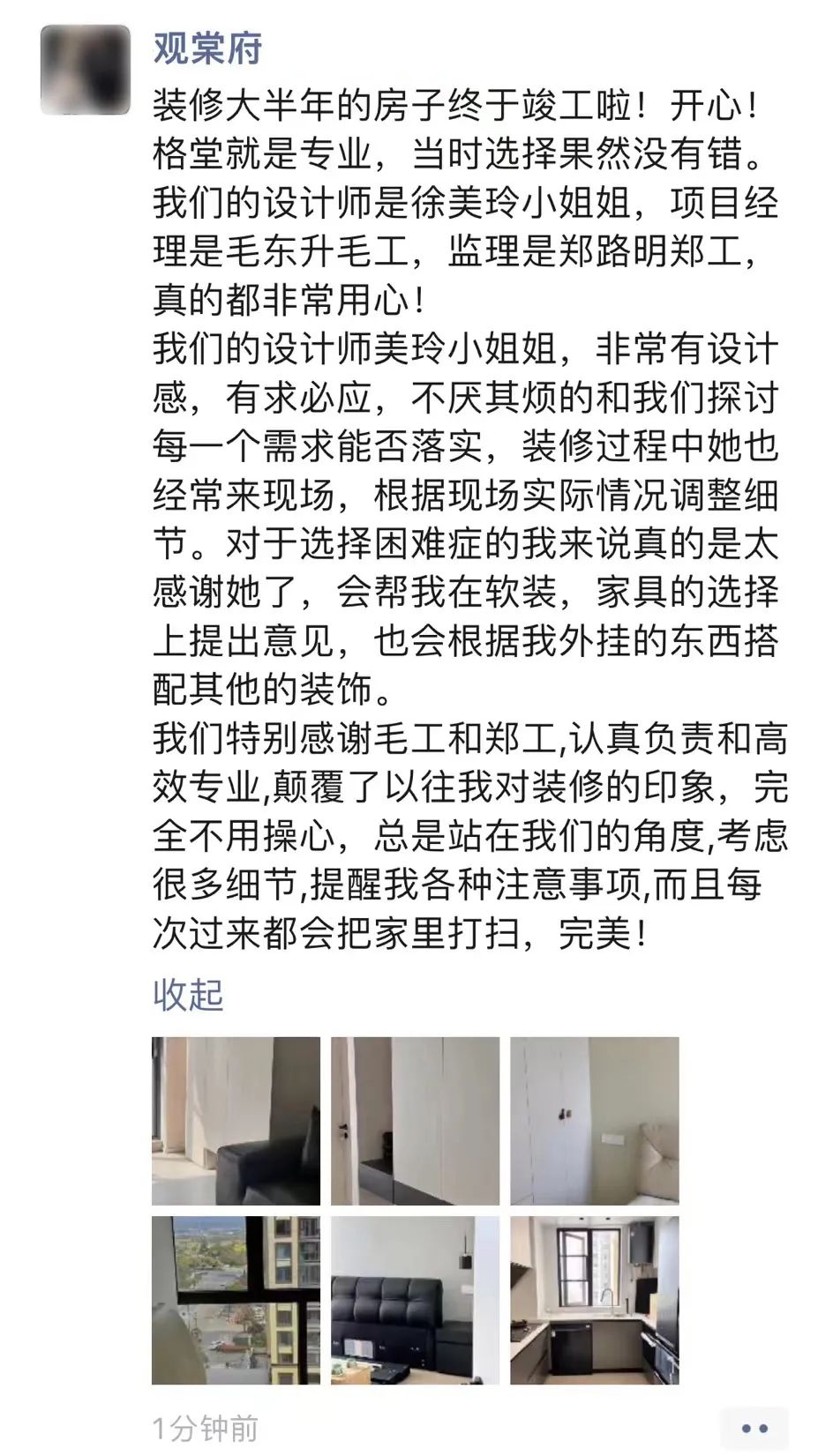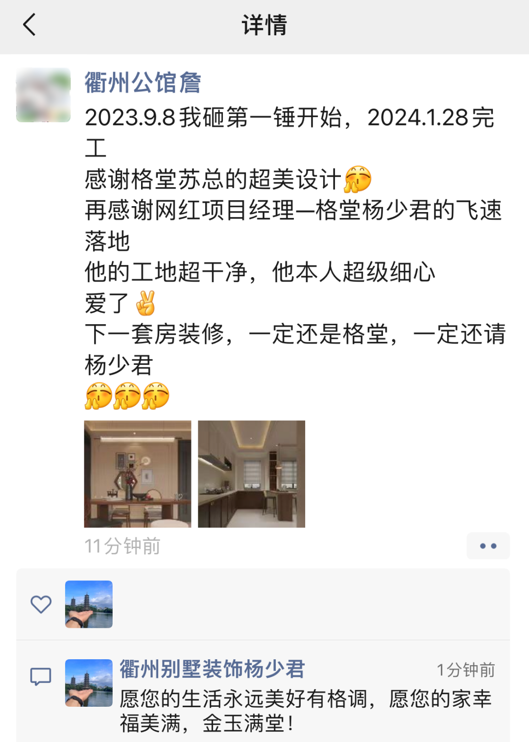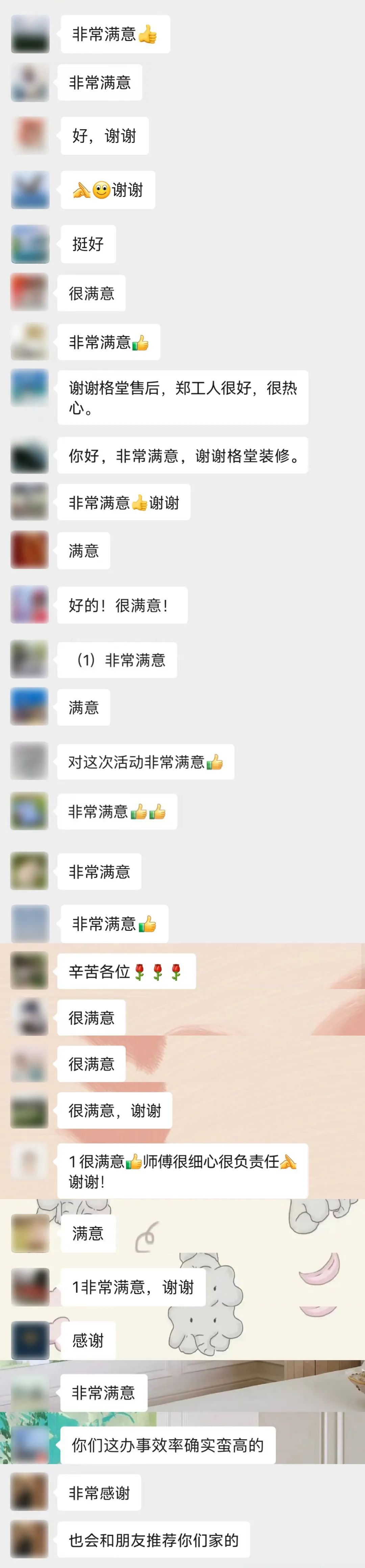 2024 格堂♥装饰 感恩♥回访 Thanksgiving return visit 17年品质护航 作为深耕衢州17年的本土老牌装修公司 格堂一直是客户心里忠实可靠的老朋友 我们始终践行感恩回访的重点服务工作 ![]() 让广大业主朋友在工程结束后 还能享受到我们贴心的售后服务 切实解决家居生活中存在的问题 一起见证老友们入住新家后的幸福生活 ![]() ![]() 回访检查维修 格堂专业售后服务团队 走进了一户户完工业主家中 对客户反映的地方进行专业检查 尽量帮助客户现场解决问题 不能即刻解决的问题 后期会安排专业的师傅上门进行维修 ![]() 开关面板帮助换新 ![]() 插座没电帮助换新 ![]() 筒灯不亮帮助换新 ![]() 灯带一段不亮帮助换新 ![]() 灯开关接触不灵敏帮助调好 ![]() 电动晾衣架安装师傅电线接错帮助重接 ![]() 电动晾衣架螺丝掉落帮助换新螺丝 ![]() 厨房胶条发黄铲除重新打胶 ![]() 厨房下水管漏水帮助换新 ![]() 洗手台胶条发霉铲除重新打胶 ![]() 浴室柜下水堵帮助清理下水管 ![]() 卫生间水龙头帮助换新 ![]() 淋浴房移门脱轨重新拆装恢复正常 ![]() 淋浴房重新打胶防渗水 ![]() 地漏堵塞帮助清理 ![]() 瓷砖踢脚线浮起重新铺贴修复 ![]() 方形吊顶开裂修补刷乳胶漆 ![]() 圆弧吊顶开裂修补刷乳胶漆 ![]() 空调出风口发霉处清除补漆 ![]() 衣柜柜门合页脱落帮助换新 ![]() 门吸坏了重新换膨胀螺丝固定回去 ![]() 门锁掉漆帮助更换新锁 ![]() 见证好评 格堂开展的回访售后服务 得到了客户朋友们的高度好评 口碑的力量让我们继续前行 ![]() ![]() 选择格堂装修无忧 格堂目前已经服务了衢州老百姓近万户 从2014年开始启动感恩回访服务 如今已经第11个年头了 每年固定的上门回访免费维修制度 让选择我们的客户 装修无忧 24H服务在线:0570-8028505 苏总:13757059288 ![]() 2小时内反馈服务 ![]() ![]() 口碑的力量 回顾装修的全过程 是对我们设计与工程质量的验证 看看2024年业主们对我们的评价 ![]() ![]() ![]() ![]() ![]() ![]() ![]() ![]() ![]() ![]() ![]() ![]() ![]() ![]() ![]() 因为有你们的口碑 格堂才有源源不断的客户 感谢您们! ![]() |