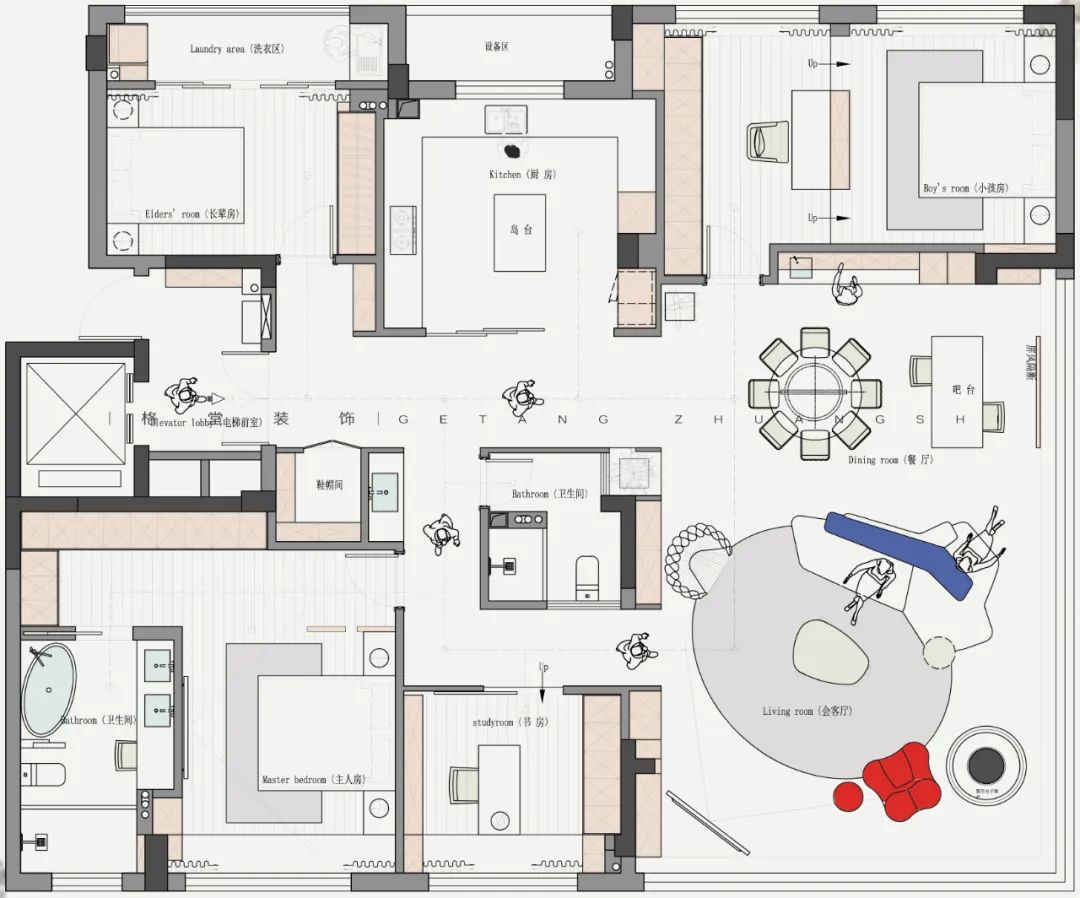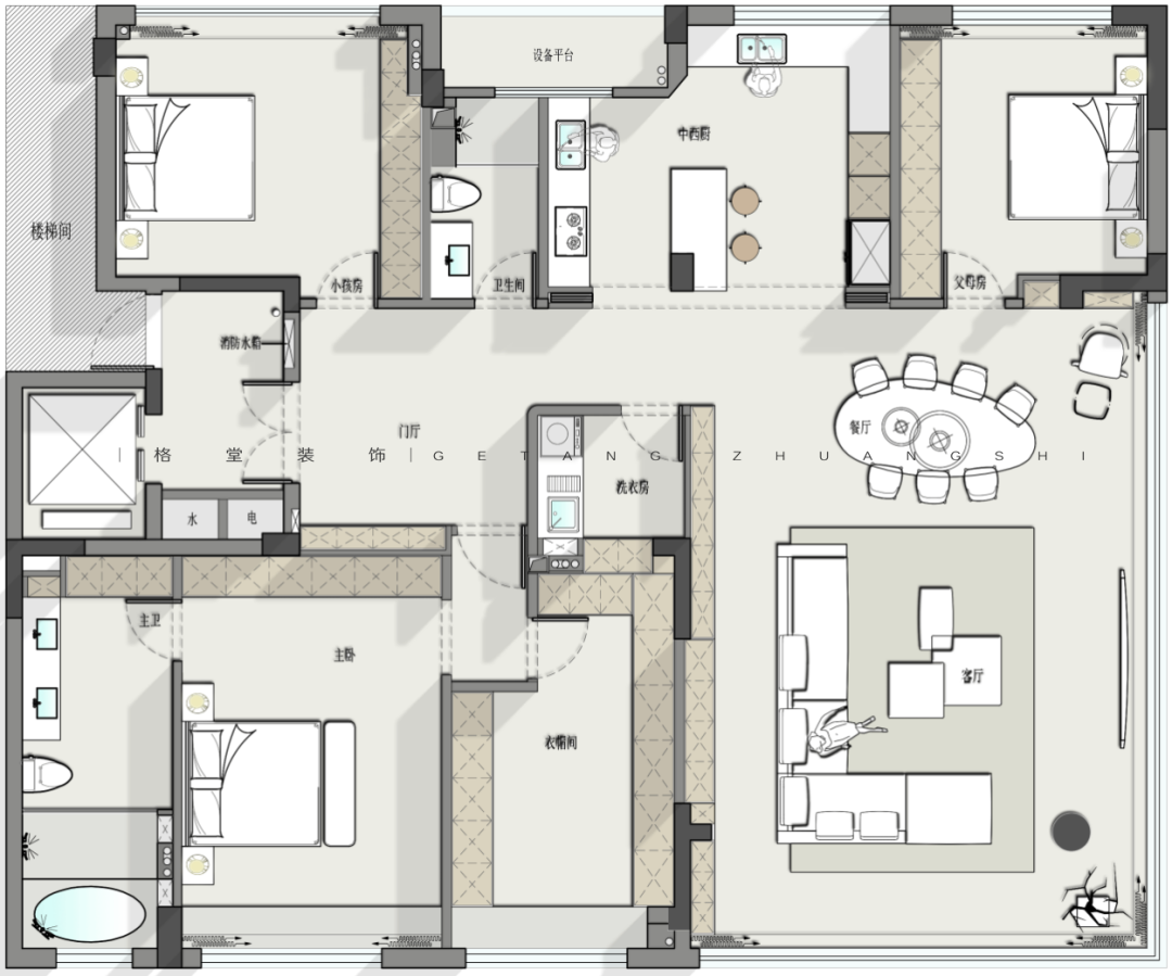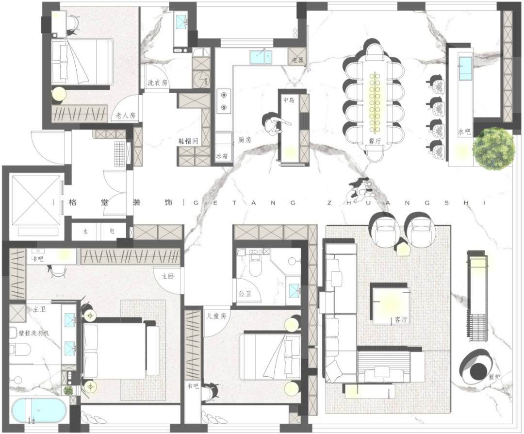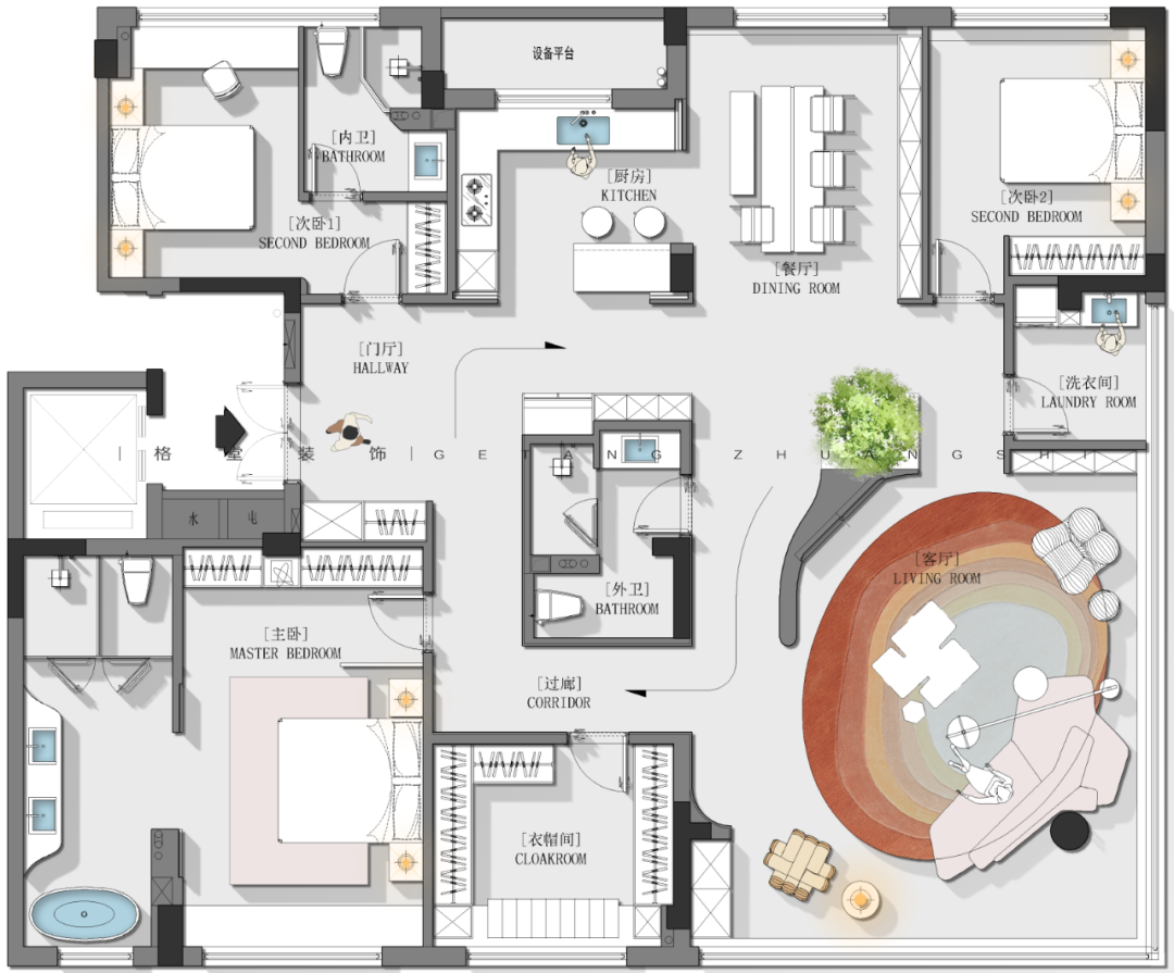 第二届格堂装饰 2025户型优化大赛 本赛事聚焦龙游江堤春晓212㎡大平层户型,参赛设计师们同做一个户型,结合家庭人口结构和生活场景需求进行户型优化设计,空间意向图、空间模型、效果图、手绘图均选做。 我们将综合考量每个设计师的平面户型优化能力,核心聚焦于户型方案的创新性、可行性、完整性、审美性等诸多方面,设立金奖1名、银奖2名、铜奖3名,表彰具有卓越户型优化感的设计方案! ![]() 大赛内容 大赛户型 ![]() 客户模拟 业主:小学老师 客户是一对刚参加工作25岁左右的年轻人,职业是小学老师,房子是父母给年轻人准备的婚房。 设计需求: ① 暂时装修好是年轻人自己住,但需要准备一个小孩房,还有考虑长辈房帮忙带小孩。 ② 客户希望房子设计要通透,体现出大平层的开阔。 ③ 需要有充足的储物空间,最好能有一个独立的洗衣间,不想在客厅洗晒衣物。 ④ 内卫要大点,想要一个浴缸,厨房需要岛台。 注意事项 房子的东面南面视野特别开阔,而且东偏北15度左右有江景,小区物业管理非常严格,设备间外扩、飘窗拆除都不可行,入户大门可微调,电梯厅不可改动,只能放鞋柜。 ![]() 7月30日周三晚 第二届格堂装饰 2025户型优化大赛总决赛 本赛季15强选手已经产生 群星闪耀,并驱争先 共襄这场设计竞赛的狂欢 ![]() 冠军之夜!巅峰对决! 15强选手们带来了精彩绝伦的户型优化设计方案 每一套设计方案都充满了创意与惊喜 冠军又将花落谁家? 让我们拭目以待! 徐美玲 大宅部 ![]() ![]() 户型分析,优点肯定是大,公共空间大,客餐厅大,主卧室大,那缺点也有,飘窗不能拆,设备还是不能扩的,很多条件都不允许。原始户型来说,厨房其实是偏小的,然后三个卫生间,两个外卫,一个内卫,它内卫其实够大,但中间这个卫生间实际是个暗卫,也不是特别舒服,包括它的尺寸也是偏小的。 当初做方案的时候,我也在纠结三个房间,都放在哪个地方,卫生间要做几个,到底保留哪一个卫生间?客餐厅基本不变,中间一个大门厅,考虑把厨房扩大,房间分三个角落安置,主卧朝南,北边的一头一尾两个房间,尺寸差不多很公平。 进门有独立门厅,留了一组鞋柜,包括说进门洗手的生活习惯,所以把外卫放在了离进门更近的地方,干湿分区,台盆、马桶、淋浴房,外扩后也比原先的更大一些。 其中一个次卧就安排在卫生间边上,后续无论是小孩住这里,还是父母住这里,使用起来都更方便。 原始厨房太小了,就考虑把厨房打开,这里还有根承重柱,刚好客户说需要一个岛台,所以把岛台跟承重柱做一个巧妙结合,整体厨房扩大。这一侧是操作空间,另一侧全部做成一个高柜、电器柜、冰箱柜,这样厨房的日常使用完全足够了。 厨房上面做了一个独立的洗衣房,以中国人习惯来说,可能还是想要能晒衣服,而不是全部依靠烘干机来操作,尤其是小孩子的衣服,父母更愿意多让小孩子的衣服拿来晒一晒。 门厅进来后的这一块,一个烟道一个管道都不能动,还有承重墙,当时真的很头痛要怎么办?我就干脆中间做了一块抬高的造景,北面做展示柜收纳柜,南面做一个储物室。这样无论是小推车,婴儿车,还是很多杂物,都有了收纳之所。 同时自然形成了洄游动线,现在整个的公共空间,包括门厅、厨房、餐厅、客厅、书房,都是非常开阔舒适的。 考虑到业主是老师的工作性质,大部分都要有一个独立的书房,那就可以把两边的口袋门关上,形成一个独立封闭的空间,可以安静的学习办公。 因为空间还很充裕,我选择把餐厅和岛台分开来,这样功能相对区分,客厅并不是一个完全定义的客厅空间,还兼顾了休闲区的功能,整个空间打开之后,包括电视背景朝向,沙发的朝向,放在哪边都没问题,选择是很自由的。想休息的时候,可以直接打开口袋门,穿过书房回主卧。 主卧空间没有再去扩大,空间也足够了。主卫给它扩大了,提升使用的舒适度,一个单盆加超大梳妆台,一个大浴缸,淋浴房加马桶间。 ![]() ![]() 詹云彬 大宅部 ![]() ![]() 这是一个小的入户,右边有鞋柜,往后走空间变开阔了,不会显得很压抑。很多设计师会在大概两米多的位置,做一个遮挡的背景,但我没有这么做,我尽可能的把这个端景,考虑是一个雕塑,做到跟电视背景形成一个衔接,看起来非常大气。 再看一下方案的整体分布,三个房间,主卧保持原位置不动,这里空间挺大的,大落地窗视野也很好。西北角和东北角,各安排了一个房间。 玄关进来的左手面房间,有1.8米的床,衣柜和书桌都有,方便小孩使用。 厨房有一个高柜一个酒柜,中间利用这根柱子,做了一个实体岛台柜,双动线过来到了最狭长的位置,结合空间形状,没有放圆桌,而是放了一个长桌,同时花坛放在这边,空间虚实都有了,流动性很强。 靠南面,原来是一个房间加一个卫生间,我把这个房间取消了,原来的暗卫没有窗,现在整个打通过去,把窗户利用起来,多出来的空间全部归到主卧里面,让主卧更大。外卫做了干湿分离设计,离两个次卧的距离都很适宜。 主卧门进来有两排衣柜,储物空间丰富。床没有按传统方向摆放,因为客户是年轻人,并且窗外面是比较好看的江景,所以就把床对着窗户了。原主卫布局不是很好,后期重新设计过了,移门进来,一个大浴缸,一个超长浴室柜,淋浴房和马桶间各自独立。 东北角的次卧,也是功能齐全,主要是把洗衣房放到了它的下方位置。 客厅仍然按照传统方法布局,有L型的一个大